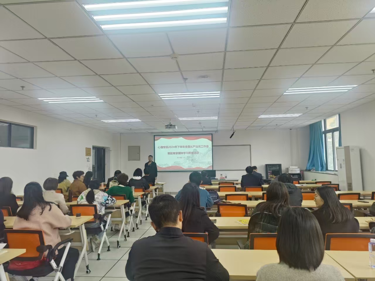 11月14日下午,必赢国际437官网党委师德师风教育暨弘扬教育家精神学习教育活动在狮子山校区综合实验楼512举行,必赢国际437官网、脑与心理科学研究院全体老师参加学习,会议由必赢国际437官网党委书记肖柯主持。