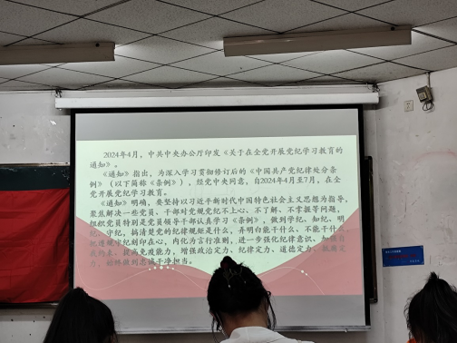 为了深入学习贯彻习近平总书记关于党纪学习教育的重要讲话和重要指示精神,扎实推进党纪学习教育,加深党员对新修订的《中国共产党纪律处分条例》的理解和认识,2024年5月25日,必赢国际437官网本科生第二党支部全体党员在第七教学楼203室开展学习《中国共产党纪律处分条例》专题党课活动。该党课由支部书记宁文涛同志主讲,支部全体党员参加活动。