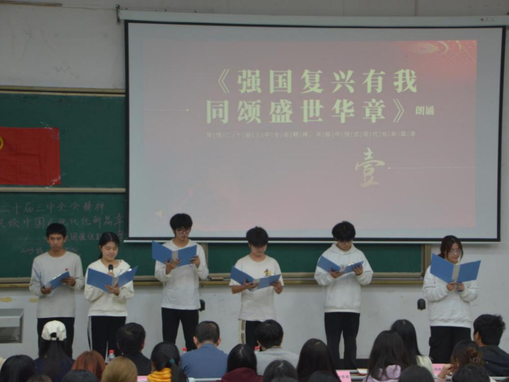 活动在一支部带来的朗诵节目《强国复兴有我,共颂盛世华章》中拉开序幕。同学们用铿锵有力的声音,表达了对国家繁荣富强的自豪与对未来发展的坚定信念。朗诵内容激情澎湃,展现了新时代青年的担当与使命,赢得了在场师生的阵阵掌声。