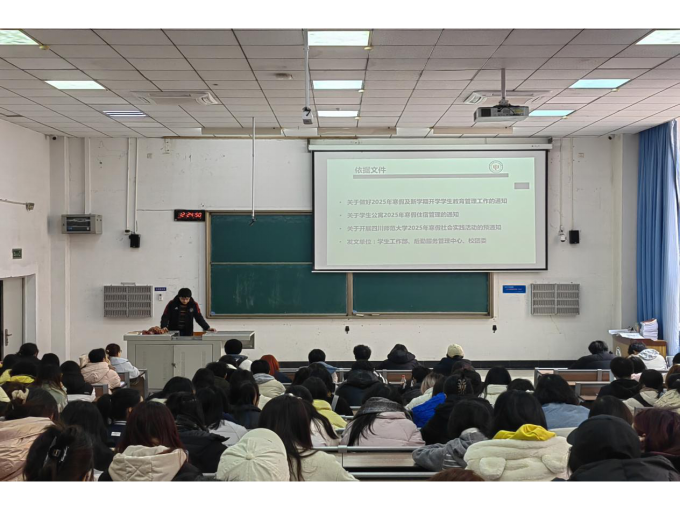 会上,蓝海依据学校学生工作部、校团委及后勤服务管理中心的通知,强调了假期注意事项。他围绕离校信息登记、学生公寓管理、学生安全及寒假社会实践活动四个方面,结合具体事例进行了详细讲解,特别强调了假期安全与寒假实践活动的重要性。此外,蓝海建议同学们及时反思和总结本学期的学习生活,为新学期做好准备。