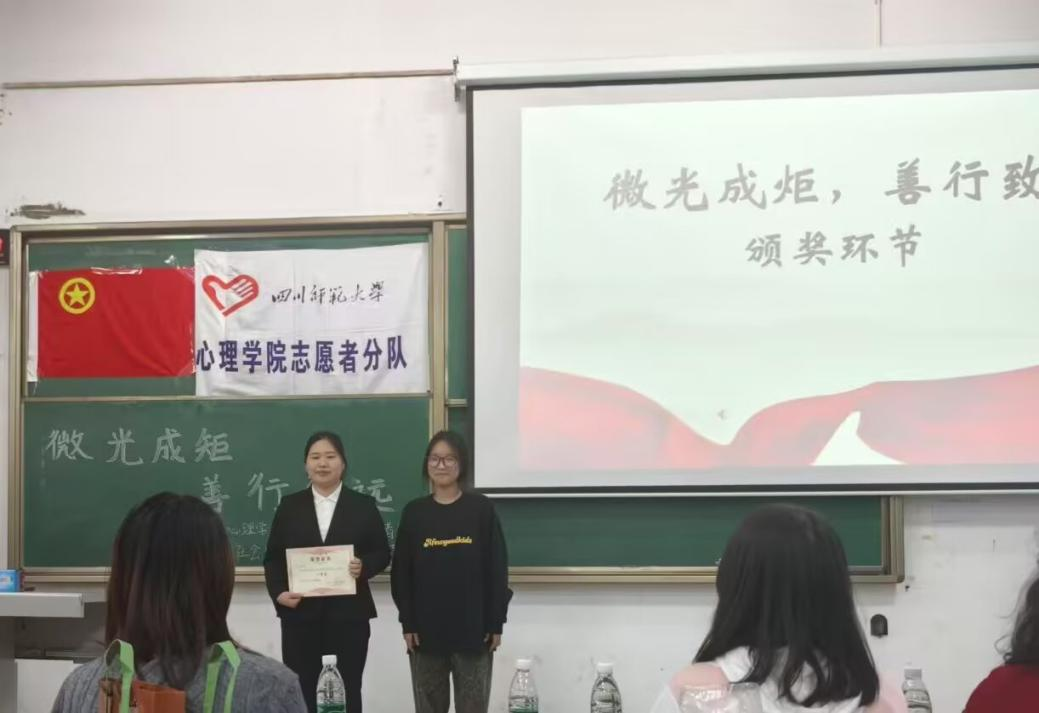 微光汇聚,终成璀璨星河;善举同行,方能行稳致远。颁奖仪式后,全体获奖者及工作人员与评委合影留念。此次评选活动不仅是一场对优秀志愿者的表彰大会,更是一堂生动的志愿精神教育课。期待在榜样力量的感召下,有更多青年学子投身志愿服务,以实际行动践行“微光成炬,善行致远”的志愿精神。