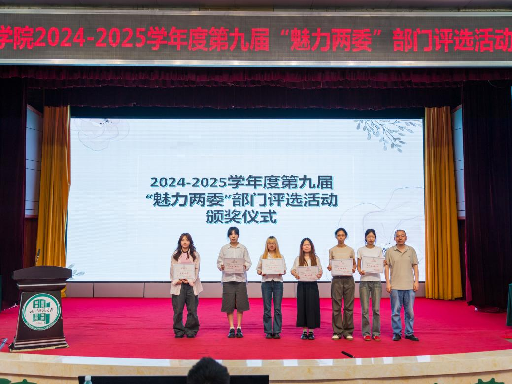 最终,新闻中心和学习与学业发展部荣获“魅力两委部门”的荣誉称号,心理服务部、网络与新媒体中心、素质拓展与美育工作部、平面设计中心分别荣获“最佳活动奖”“最佳创新奖”“最佳管理奖”“最佳协助奖”;杨程书记为获奖部门颁发荣誉证书并合影留念。