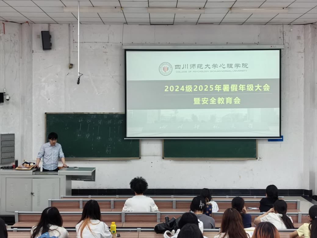 2025年6月19日下午,必赢国际437官网于狮子山校区第七教学楼318召开了2024级本科生2025年暑假年级大会,2024级全体学生参与,会议由辅导员蓝海主持。