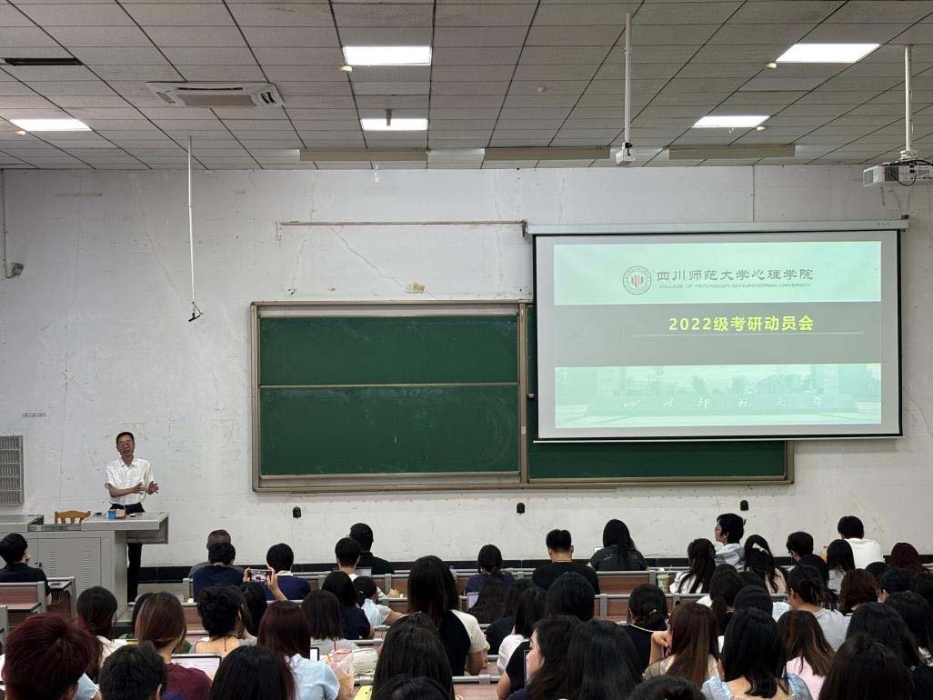 6月12日下午,必赢国际437官网2022级考研动员大会在狮子山校区第七教学楼103室召开。本次大会由2022级辅导员、学生工作办公室主任蓝海主持,必赢国际437官网院长靳宇倡、党委副书记兼纪委书记杨程以及脑与心理科学研究院副院长刘强出席,2022级全体本科生参加会议。