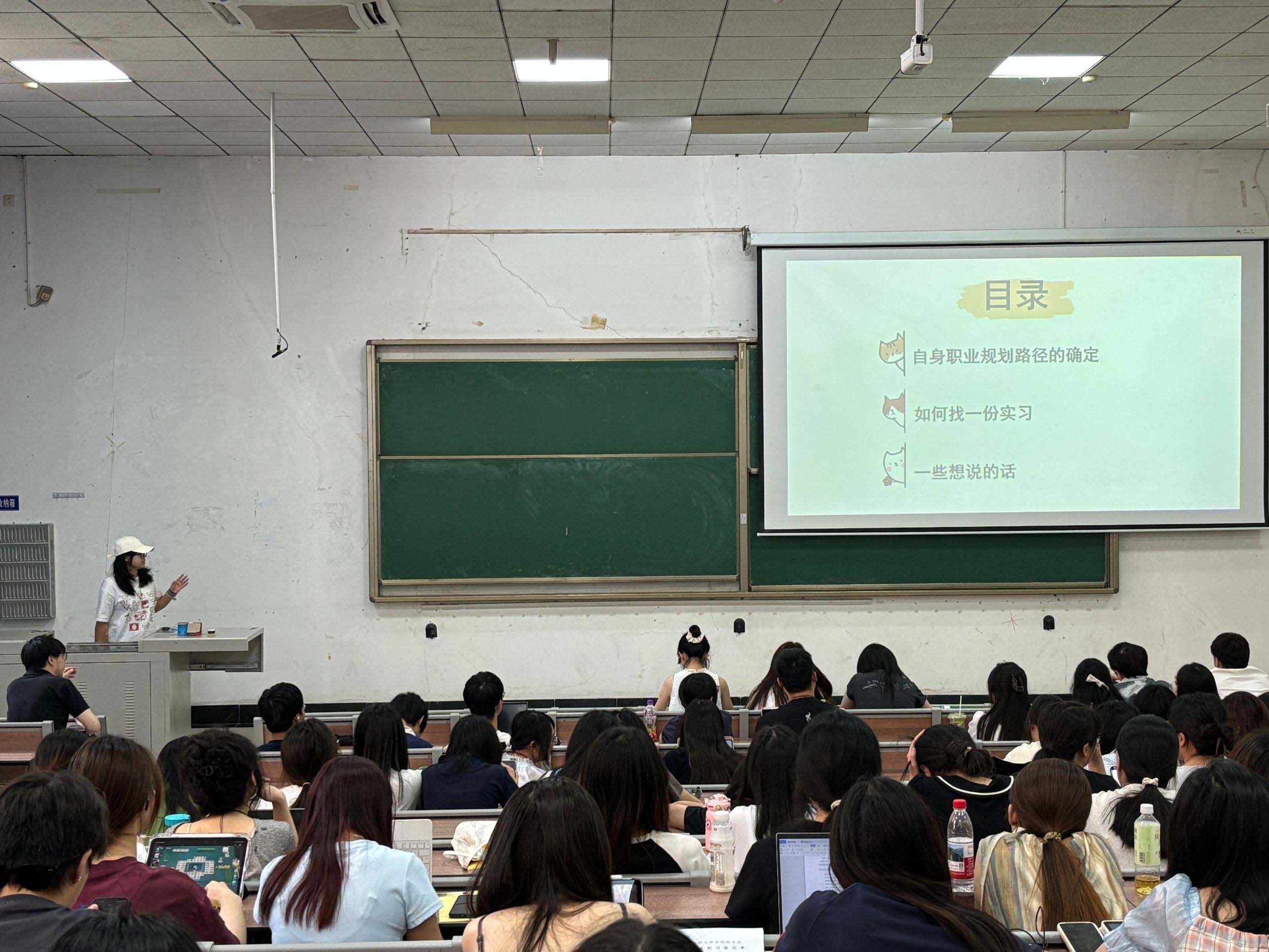 在就业经验分享环节,薛参雨同学结合自己的求职经历,为同学们提供了宝贵的建议。她讲述了如何制作一份吸引人的简历,突出自己的优势和特长。在面试方面,薛参雨同学分享了如何回答常见的面试问题,以及如何与面试官进行有效的沟通。他还提醒同学们要关注就业市场的动态,积极参加各类招聘会和实习活动,积累工作经验。