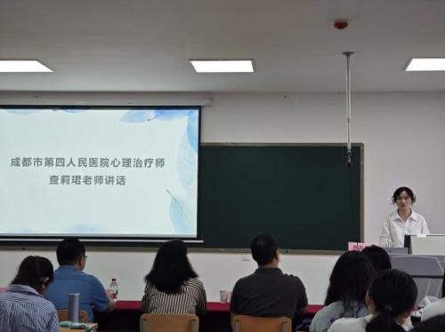查莉珺介绍了成都市第四人民医院实习基地的工作与教学情况,涵盖心理热线危机干预、临床见习了解病人、心理学治疗讲座等多方面内容。她高度肯定了川师学子展现出的专业热情,并热忱期待同学们前往实习。