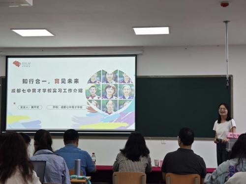 翼芊宏则分享了成都七中育才学校水井坊校区相关工作,如心理健康课程、团体辅导、参与区级及集团教研活动,以及“5.25”心理健康节等特色活动的组织。她表示,实习是一场温暖的双向奔赴,学生与实习单位共同成长。
