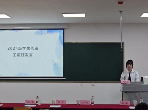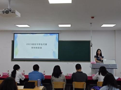 2024级学生代表王媛钰同学代表即将踏上实习征程的新一级研究生发言表示,将紧握实习的“接力棒”,延续学长学姐的优良作风与宝贵经验,让实习的历练之光持续闪耀,照亮专业成长之路。