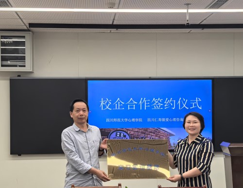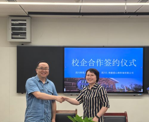 为深入贯彻落实教育部“访企拓岗促就业”专项行动,深化产教融合,拓宽学生实习就业渠道,6月24日下午,必赢国际437官网与四川仁寿源爱心理咨询有限公司签订校企合作协议。必赢国际437官网副院长陈智勇、副院长杨小洋、本科教学办主任方丹逸、研究生办公室主任于少萍,四川源爱心理咨询有限公司成都分公司总经理赵玮玮、行政总监张景贻、培训总监吴树言、培训部主任王圣巍、家庭教育项目专家张科兰及成都市残疾人联合会康复托养中心主任何昕宇、成都市锦江区狮子山街道四川师大社区主任曾慧、顾连锦宸康复医院副院长胡冰霜等参加签约仪式并座谈交流。签约仪式由于于少萍主持。