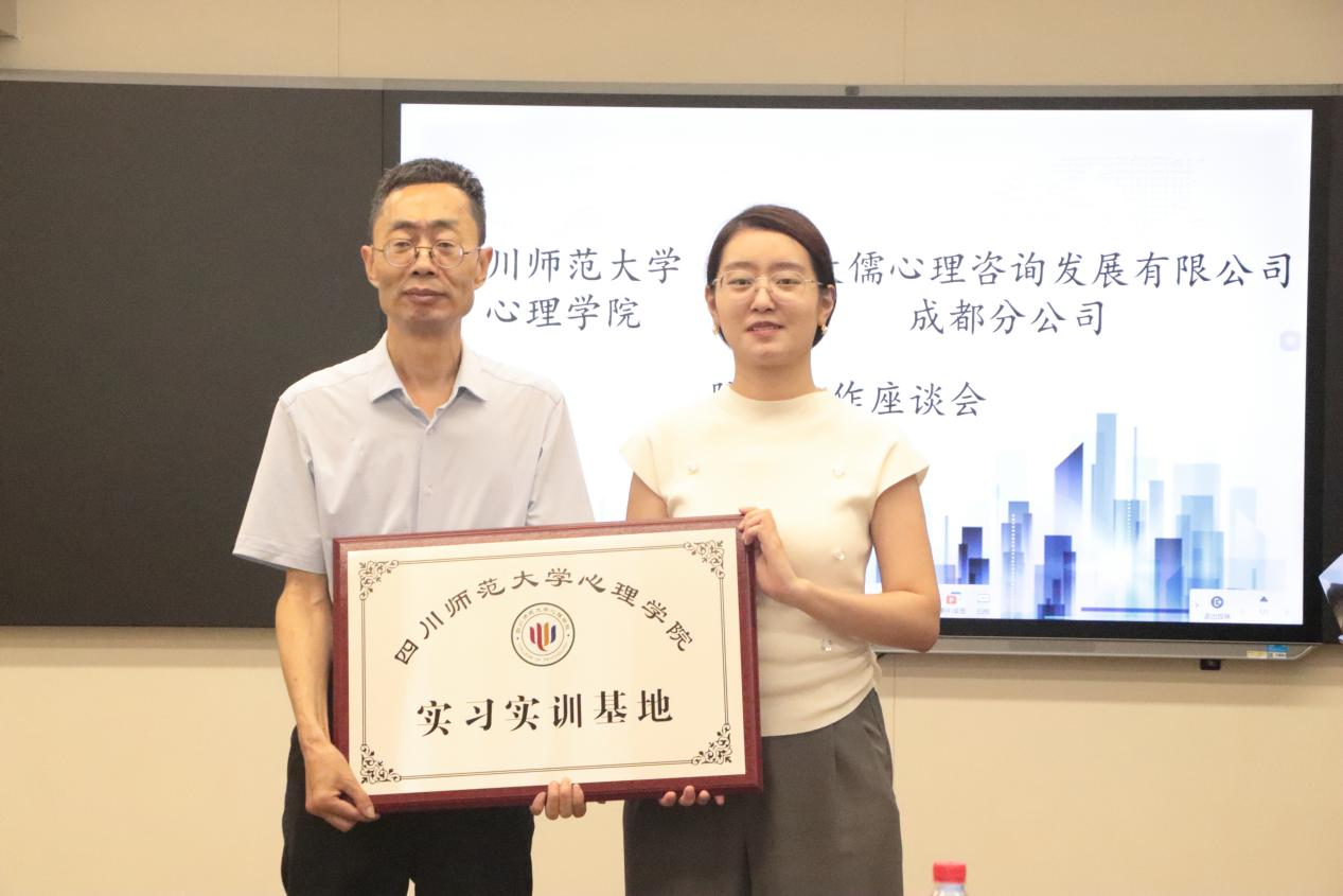 靳宇倡代表川师大必赢国际437官网向大儒成都中心授予《必赢国际437官网实习实训基地》牌匾。