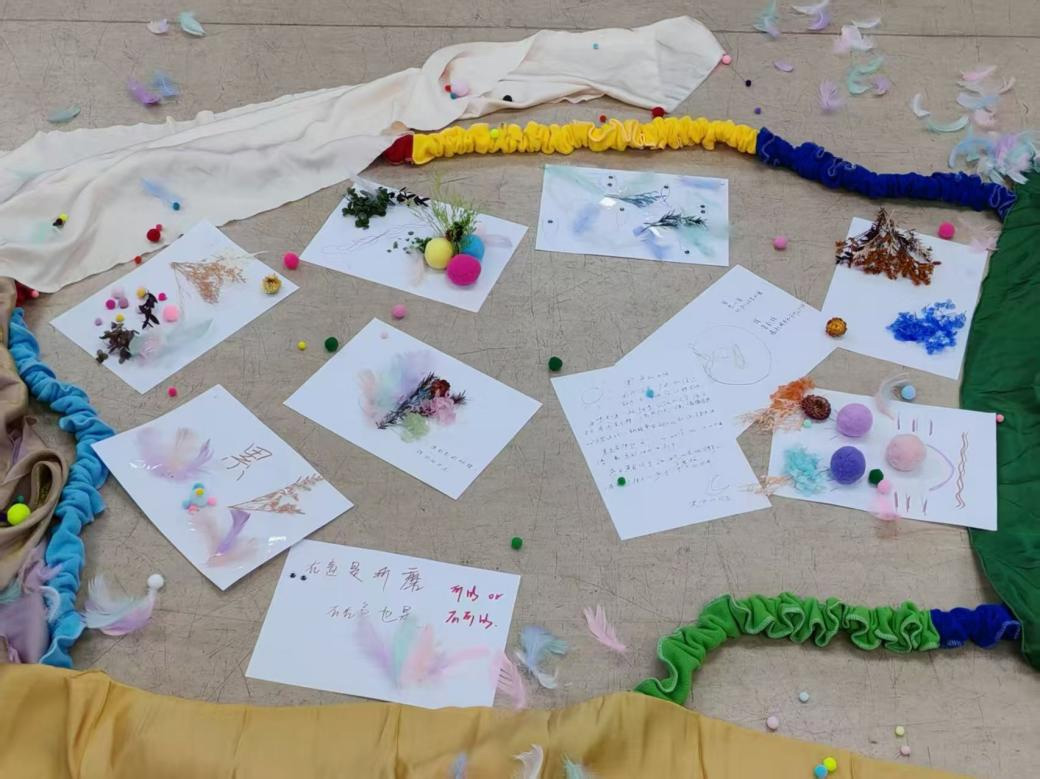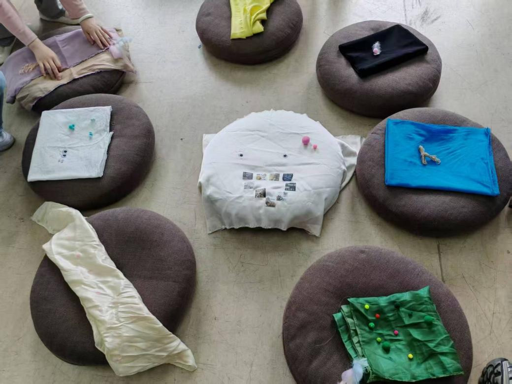 第二场活动以“以布料为媒介的自我当前状态探索”为主题。同学们动手装饰属于自己的布料,赋予其形状、色彩与情感意义。在创作过程中,参与者被引导去想象“这些布料是有生命的”,并据此写出关于它们的独特故事。这些充满想象力的创作和文字,真实地反映了参与者当下的情绪状态、内心的渴望或生命故事的片段,成为探索自我当前内心世界的真实镜像。