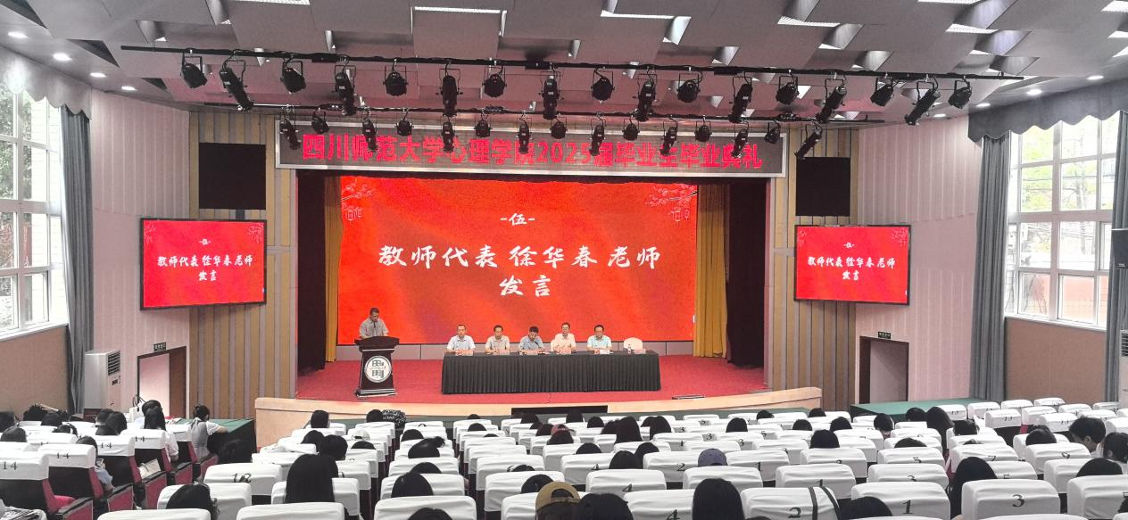 教师代表徐华春副教授为毕业生们送上殷切嘱托。他寄语同学们三点期望:一是保持学习的心态,在日新月异的时代中不断更新知识、拓展视野。二是保持独立的人格,以积极乐观的心态面对未来挑战,在逆境中磨砺成长。三是面对挑战,勇敢走向生活,相信心理学赋予同学们的内在的判断力、共情力与行动力会在关键时刻支撑自己,也点亮他人。