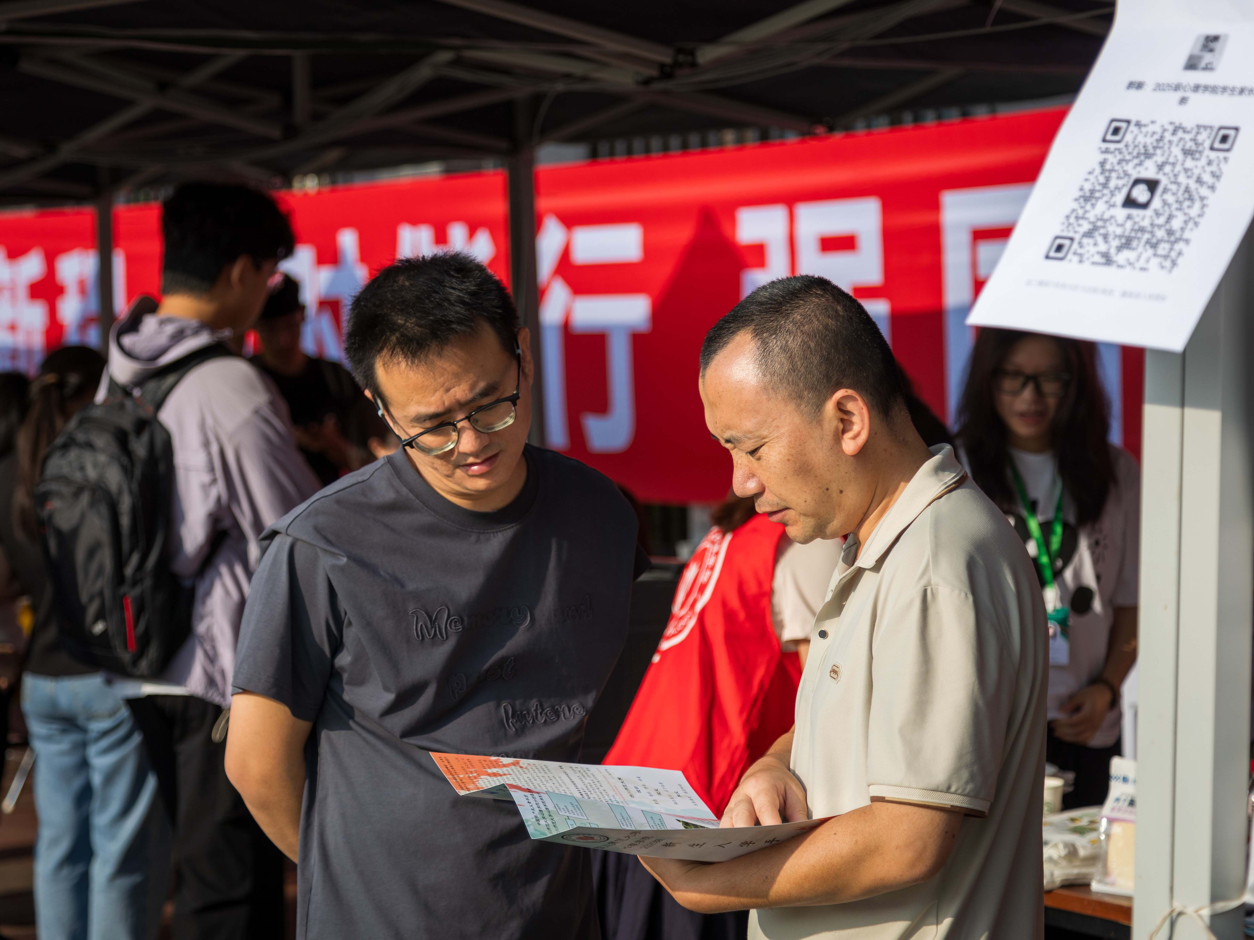 报到期间,学校与学院领导来到现场,与新生及家长进行深入交流。